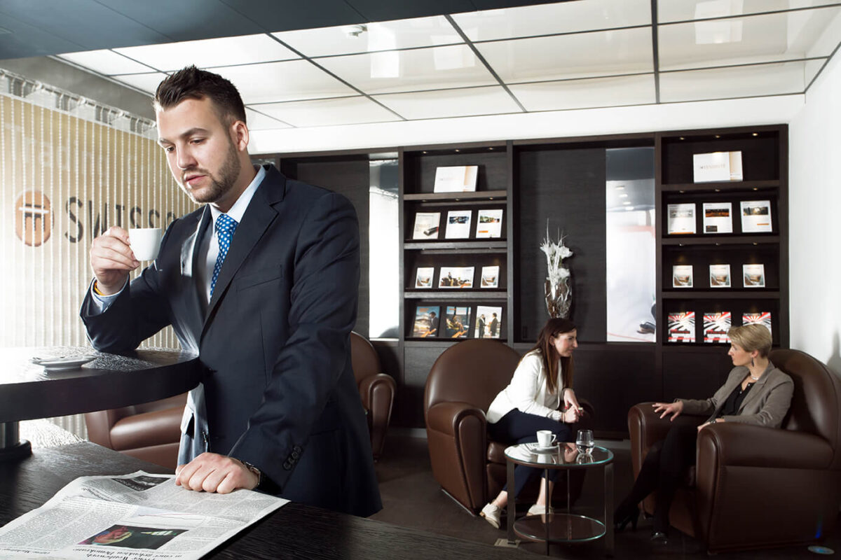 Swissquote in Gland, Lounge in Zürich & Kampagnenbilder.